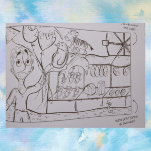 Das Buch wurde sehr modern und poppig von Sean Webster illustriert und die Bilder machen sofort gute Laune. Zwischendrin gibt es auch immer wieder Ausmalseiten. „You can color this page!“ Klasse! Dabei können wir gleich mal überlegen, wie die Farben auf Englisch heißen.