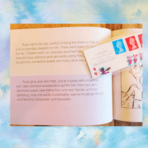 Eins vorneweg, dieses Buch dient nicht nur dazu eine Geschichte zu lesen, sondern soll dazu dienen eine Sprache zu lernen. Daher wird die Geschichte von Rudy auf jeder Seite in Englisch und deutsch erzählt. Das ist wunderbar übersichtlich und wie ich finde eine fabelhafte Idee.