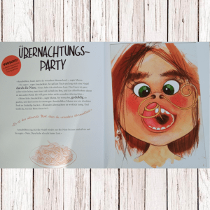 Ihre verrückten und gleichzeitig lustigen Einfälle machen das Buch besonders und auch die bunten Illustrationen sind absolut passend und witzig. Sie gefallen mir richtig gut, insbesondere die großen Gesichter, in denen man sofort die Gefühle der Protagonisten erkennt.