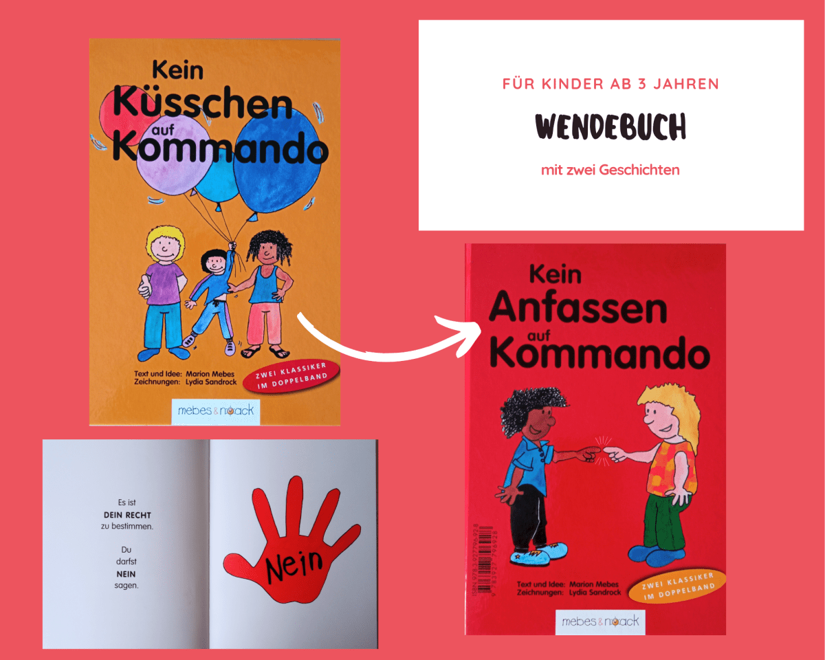 Heute zeige ich euch dieses Wendebuch von Marion Mebes für Kinder ab drei Jahren. Es geht in beiden in beiden Teilen darum, die eigenen Gefühle ernst zu nehmen und Grenzen zu setzen. Dabei sind die Texte sehr klar und einfach, so dass auch kleinere Kinder dem Thema gut folgen können und verstehen, worum es geht.