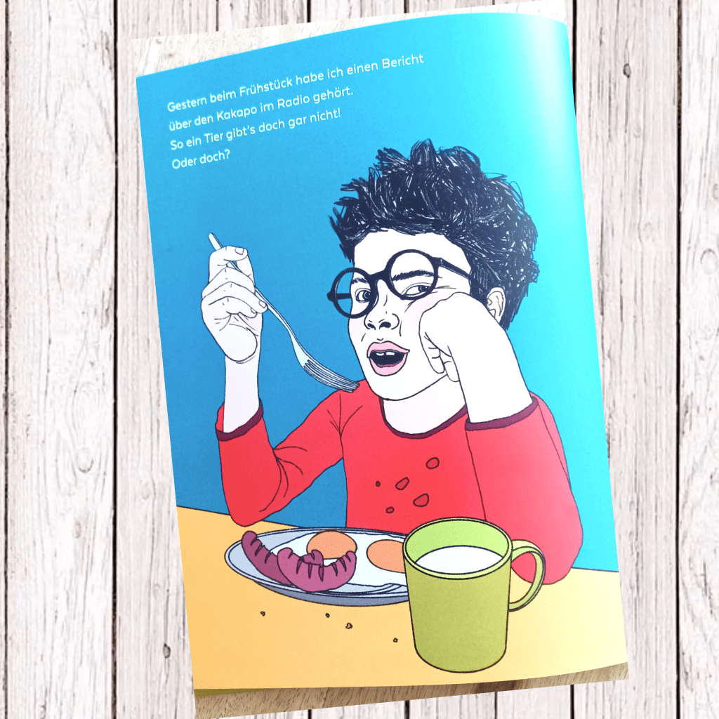 Oh ja, wie gerne hätte ich einen Kakapo! Was? Wie? Wer? Ich gebe zu, ich wusste erst mal nicht so genau worum es geht, als ich den Titel von Elena Prochnow’s neuem Kinderbuch las, das gerade ganz aktuell erschienen ist. Aber jetzt bin ich um einiges schlauer und ich weiß, dass dies ist ein ganz besonderes Tier ist.  Auch der Protagonist, ein kleiner Junge im Grundschulalter, war sich zuerst gar nicht so sicher, ob es den Kakapo wirklich gibt oder sich jemand dieses wunderbare Wesen nur ausgedacht hat. Bei allem was er im Radio über ihn erfahren hat, wäre dieser außergewöhnliche Papagei  nämlich das ideale Haustier für ihn. Denn er wünscht sich nichts sehnlicher, als einen tierischen Begleiter.